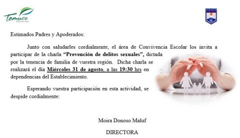 Charla “Prevención de delitos sexuales” miércoles 31