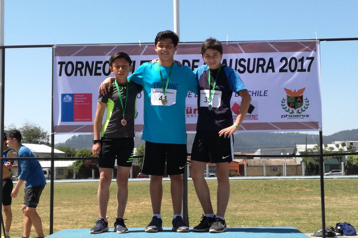 En la competencia de los 400 metros planos categoría b infantil, el segundo lugar lo obtuvo Jorge Salinas Aniñir, el cuarto lugar se lo llevó Benjamín Cerda Araneda y el quinto lugar Daniel Cheuqueo.