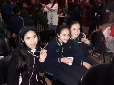 Estudiantes del sexto año B, Isidora Vásquez Navarrete, Constanza Venegas Carrasco y Maite Castro Espinoza en compañía de la Trabajadora Social de nuestra Escuela, participaron del Tercer Congreso Comunal de Niños “Hablemos de nuestra ciudad”
