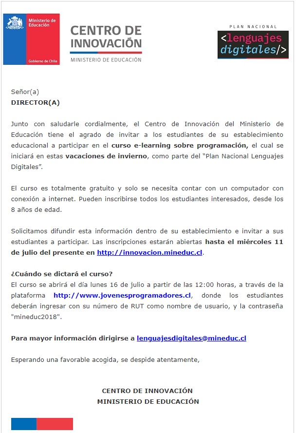 Invitación MINEDUC, inscripciones hasta el miércoles 11 del presente en el primer link, mas información en la imagen