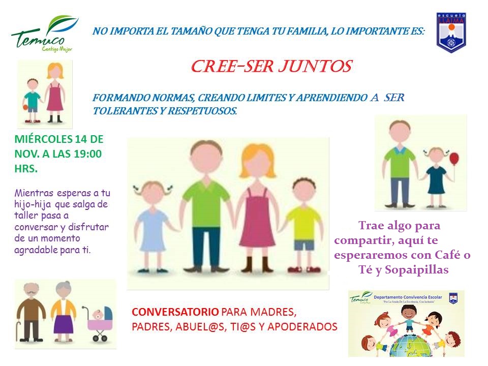 Taller para padres, madres y apoderados, se realizara el día miércoles 14 de Nov. a las 19:00 hrs. en dependencias de la escuela.