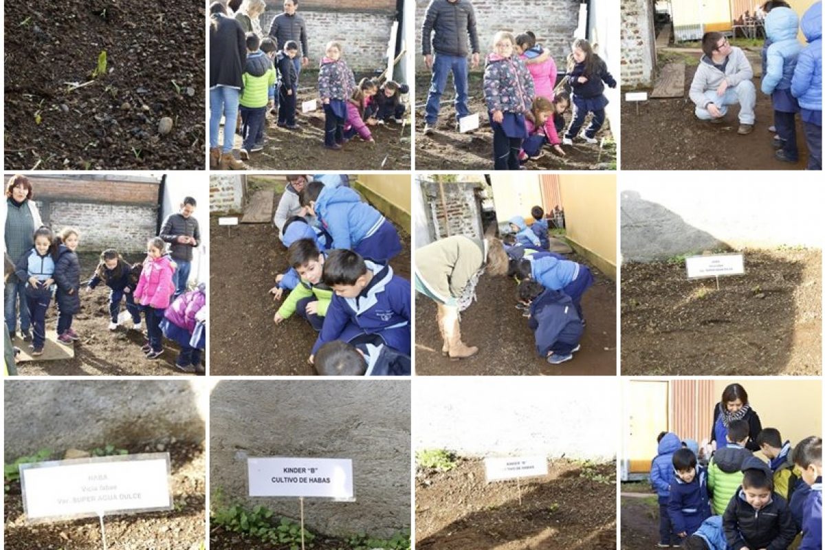 Los pequeños del Kinder B de nuestra escuela, visitan la plantación de habas y hacen seguimiento de la siembra y el proceso de germinación, el cual tuvo un tiempo de 28 días. En este período de tiempo, las plántulas alcanzaron una altura de 1,5 centímetros.