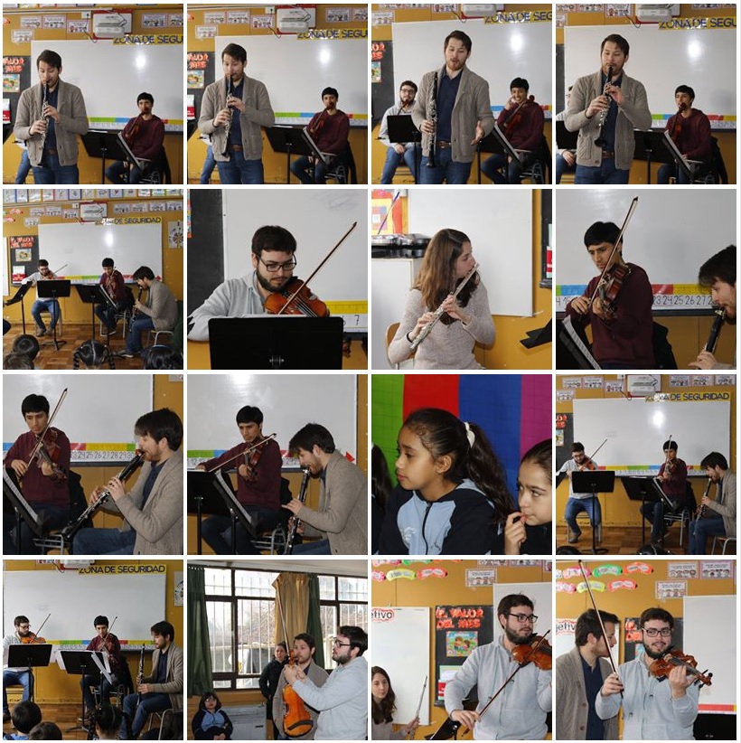 CUATRO MUSICOS DE LA ORQUESTA FILARMONICA DEL TEATRO MUNICIPAL DE TEMUCO VISITARON NUESTRA ESCUELA ESTA MAÑANA, PARA DELEITAR CON SUS MELODIAS AL KINDER A Y AL TERCERO BASICO D. MUY AGRADECIDOS POR ESTE ESPECIAL MOMENTO… LOS ESTUDIANTES DISFRUTARON Y APRENDIERON.
