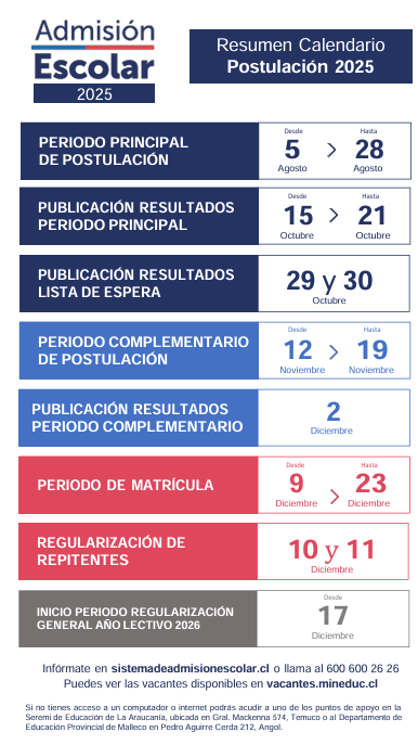 Dejamos el Calendario de Sistema de Admisión Escolar