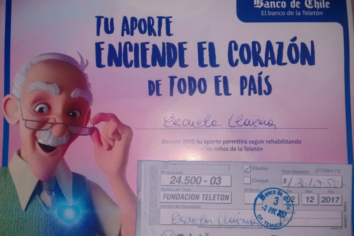 Finalmente, el monto aportado por la Escuela Llaima para la TELETON 2017, fue de $1.261.750.- superando ampliamente la meta de $650.000.-